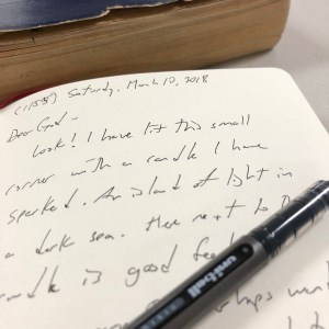 Dear God, Look! I have lit a small candle in the corner. An island of light in a dark sea. Here next to me, in the glow, is good feeling and human warmth. Joy.