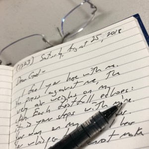 Dear God, I feel you here with me. You press against me, the very air on my skin. Each footfall echoes: it is your steps with mine. You arm on my shoulders. You whisper to me. I hear the sound but cannot make out the words.
